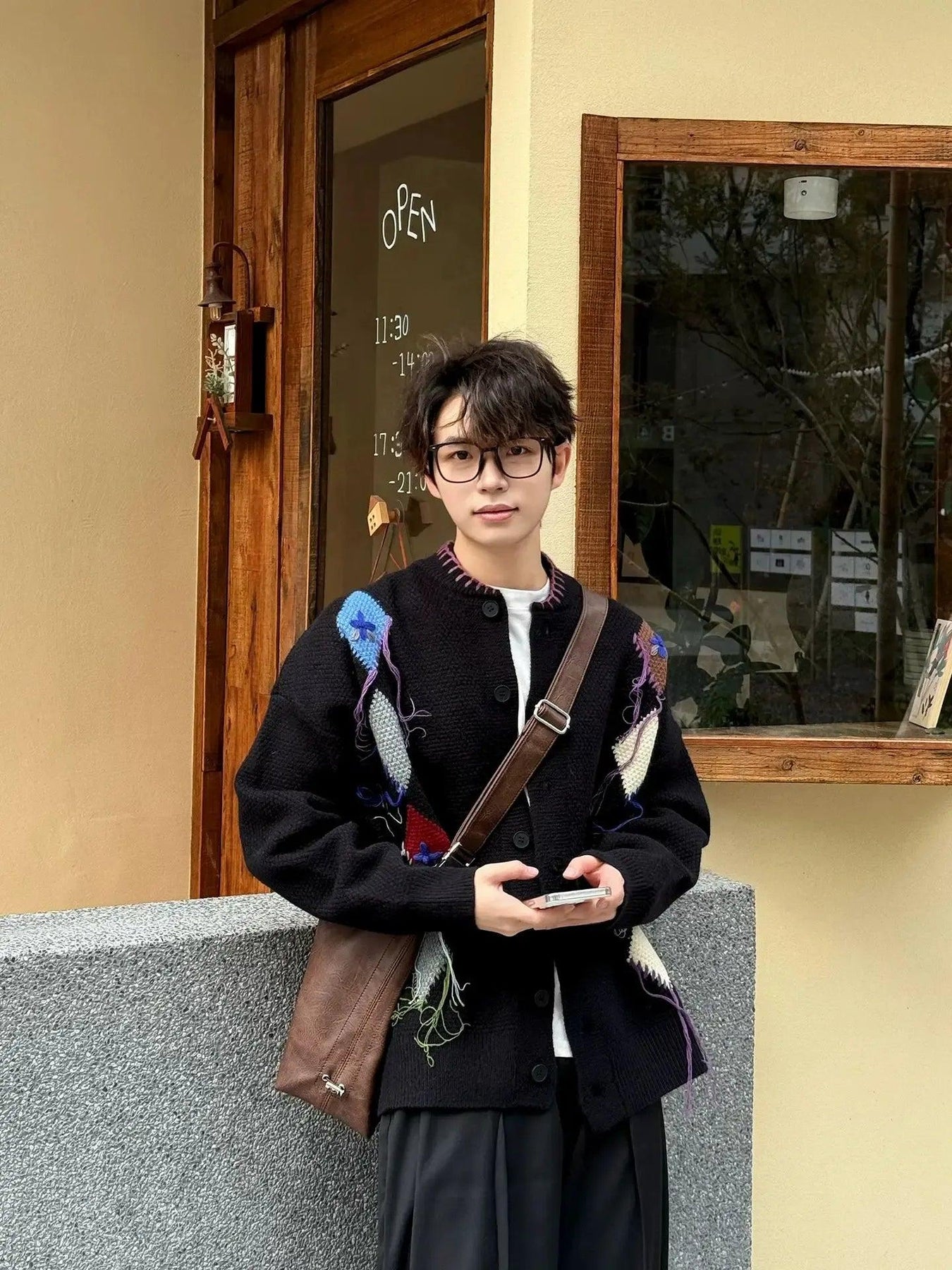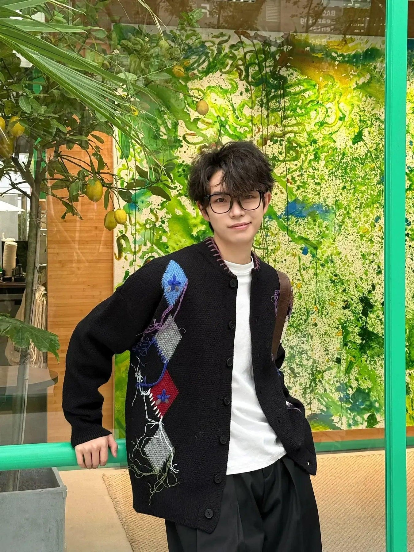 Zhou Diamond Knit Contrast Cardigan