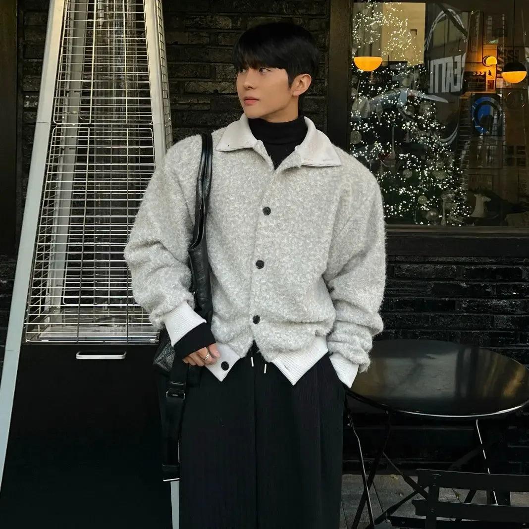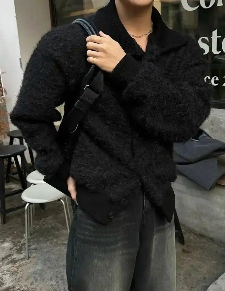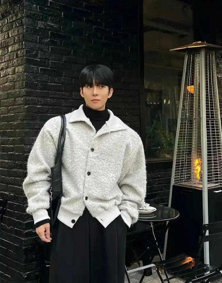 OH Fuzzy Ribbed Hem Buttoned Jacket