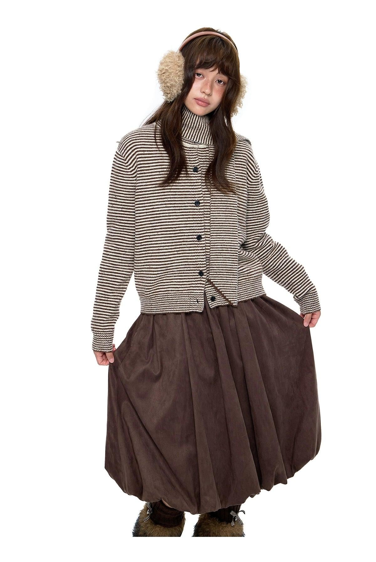 Tom Buttoned Striped Scarf Knit Jacket