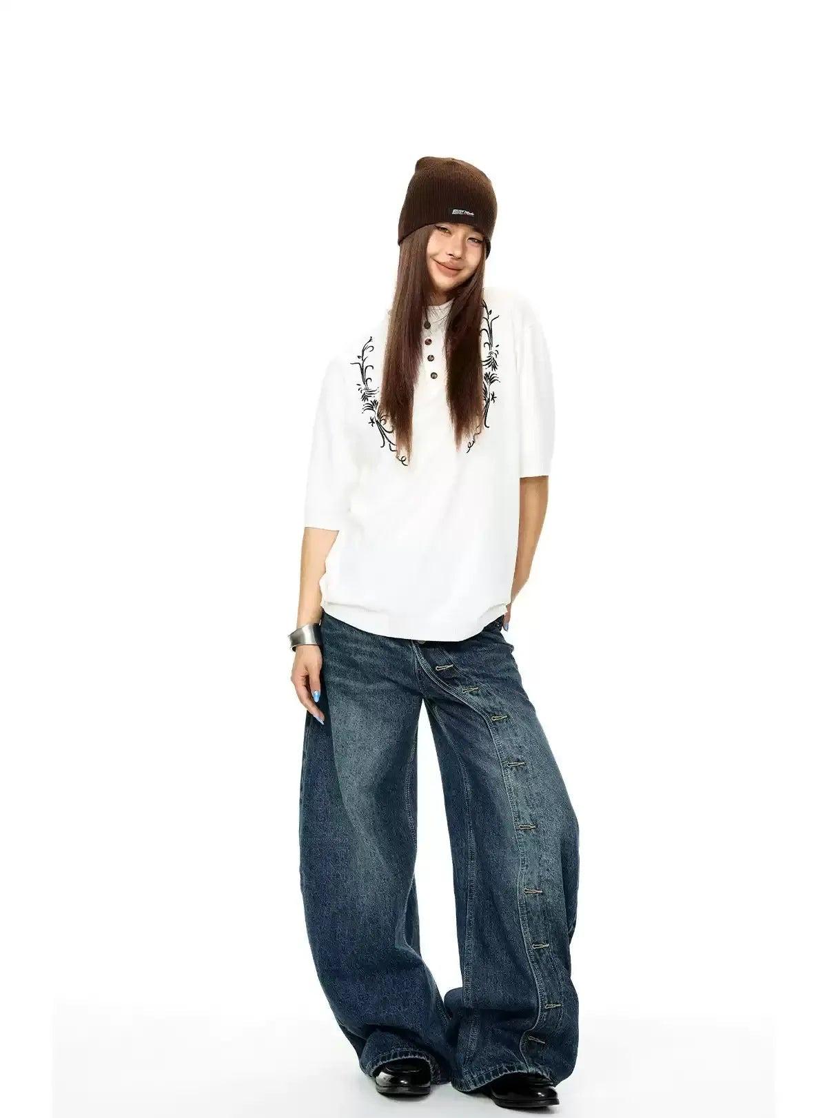 BB Buttoned Pattern Scimitar Jeans