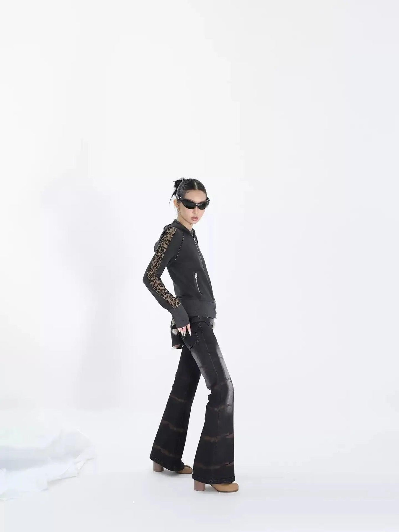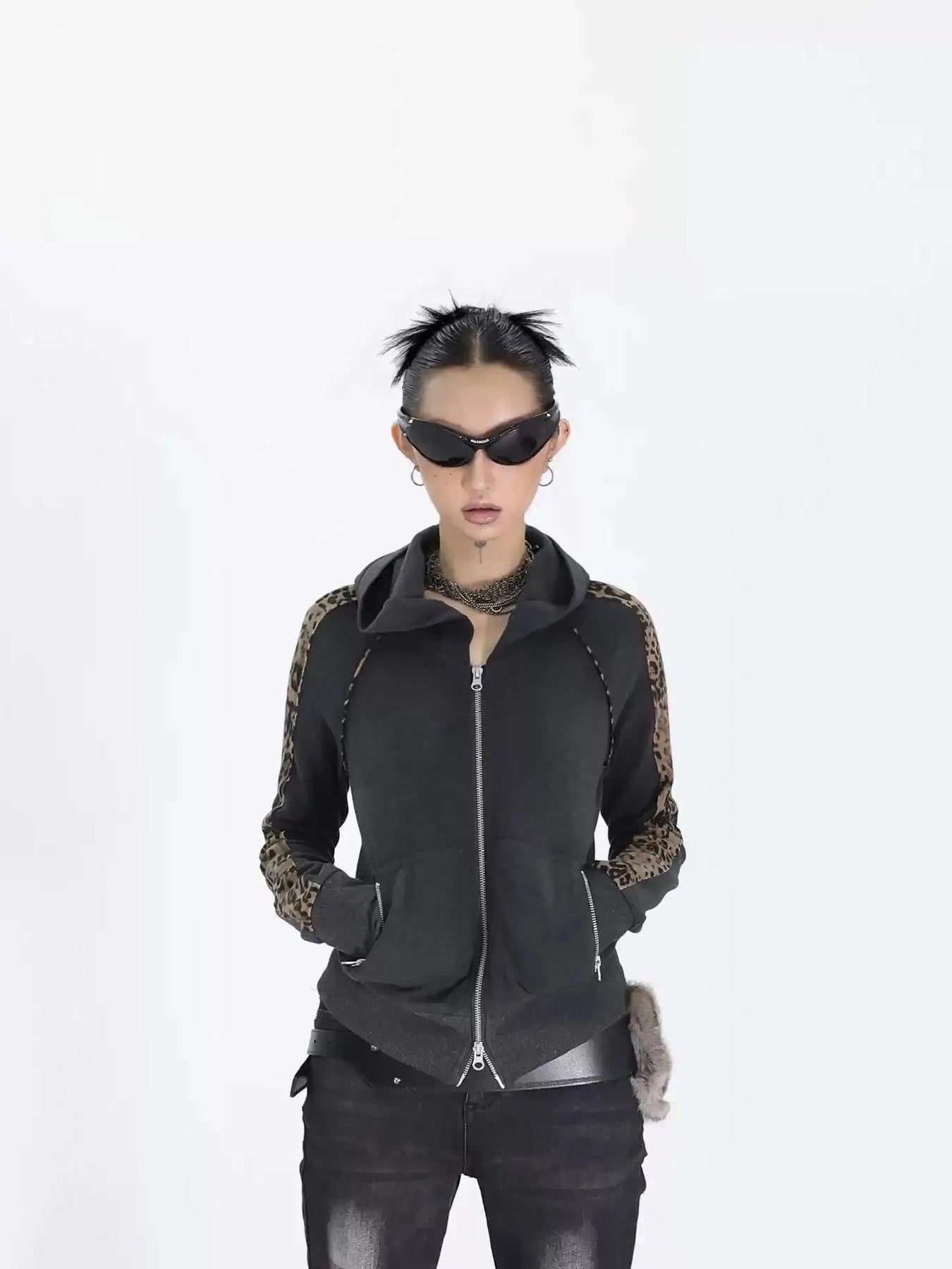Kei Leopard Print Spliced Zip-Up Hoodie