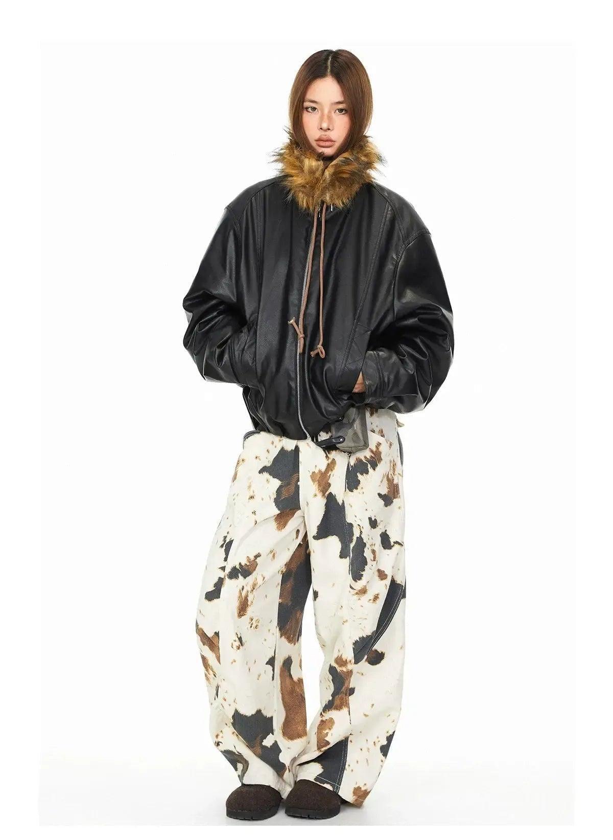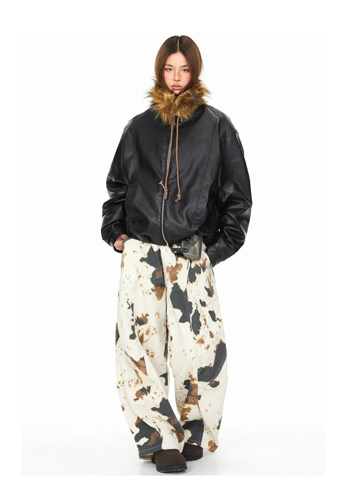 BB Drawstring Furry Hood PU Leather Jacket