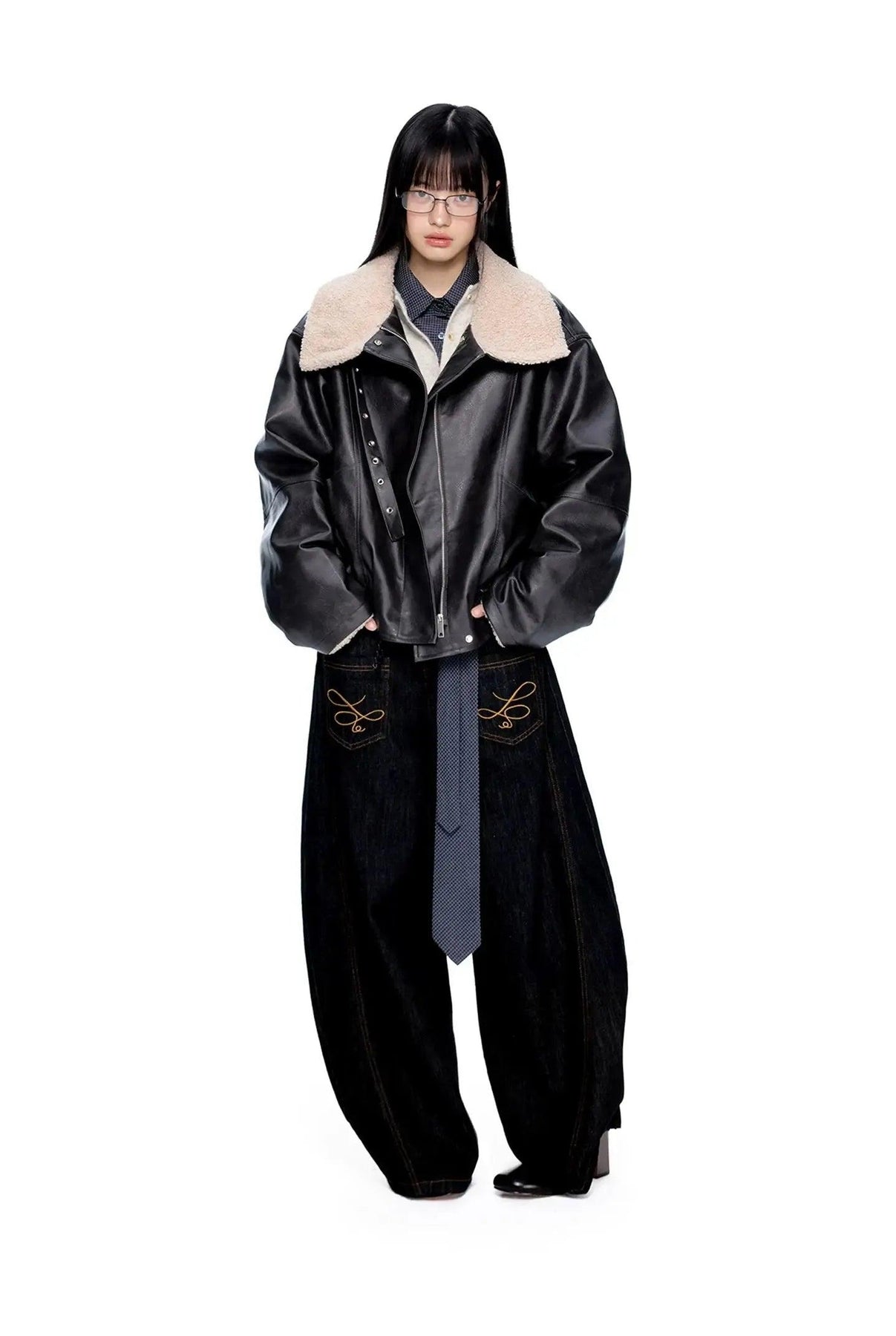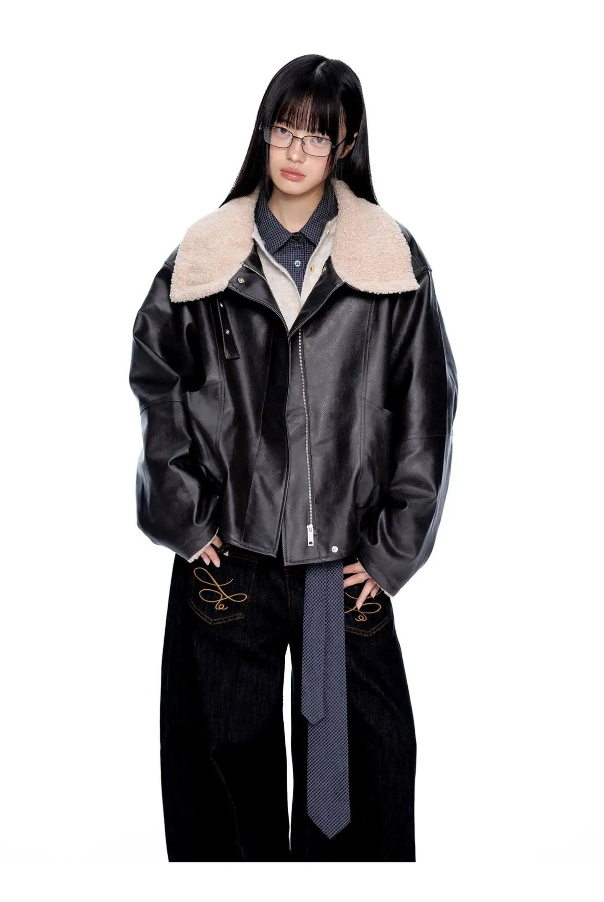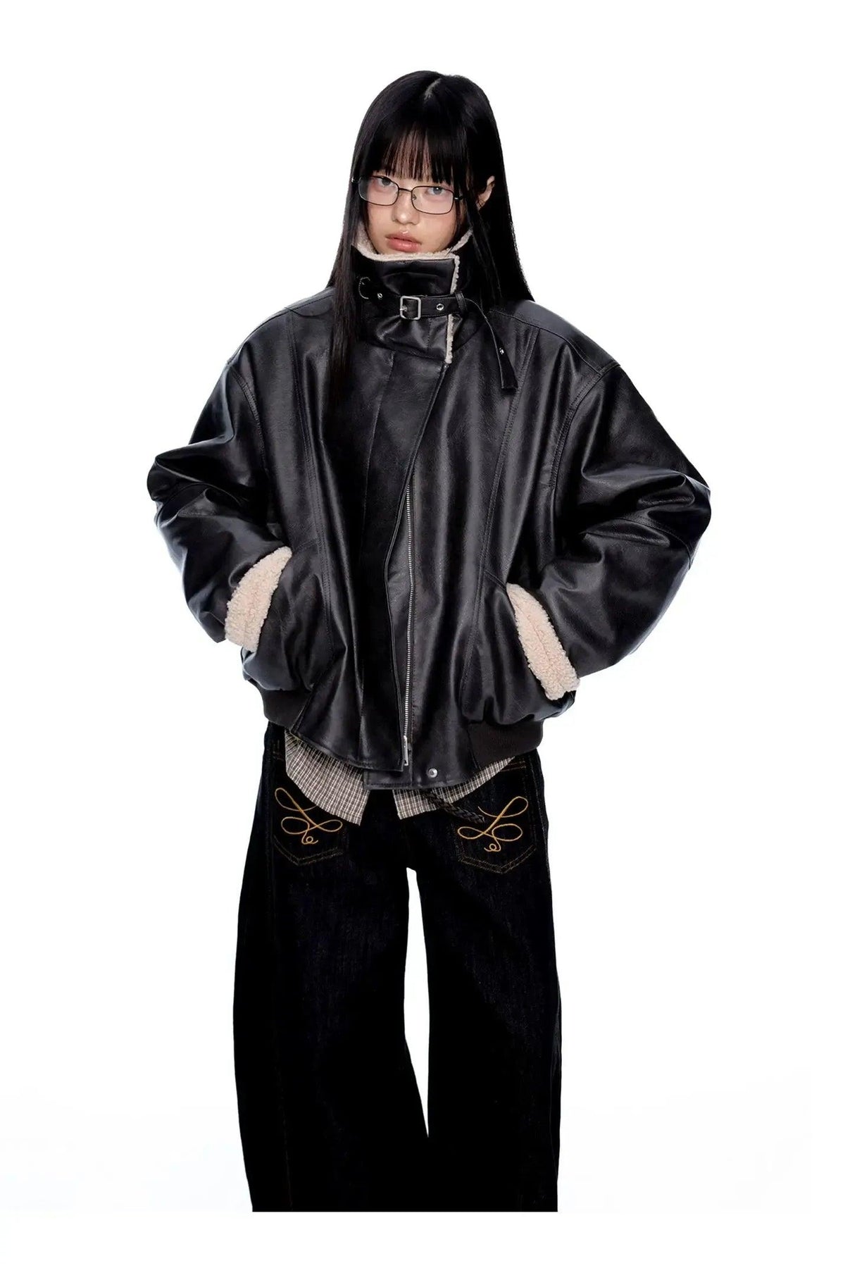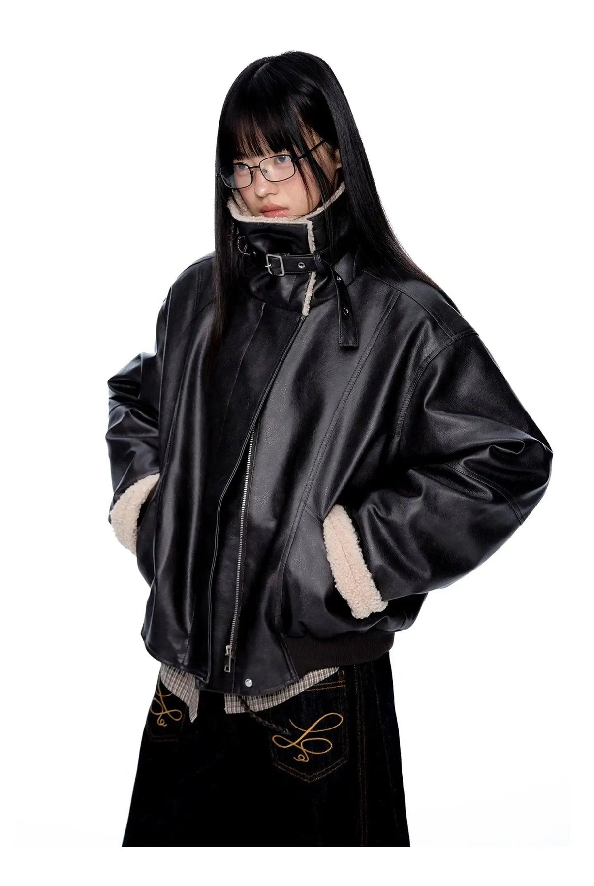 Tom Fleece Lined Buckled Collar PU Leather Jacket