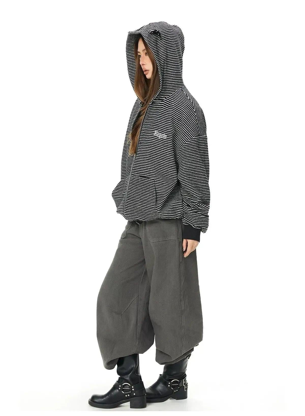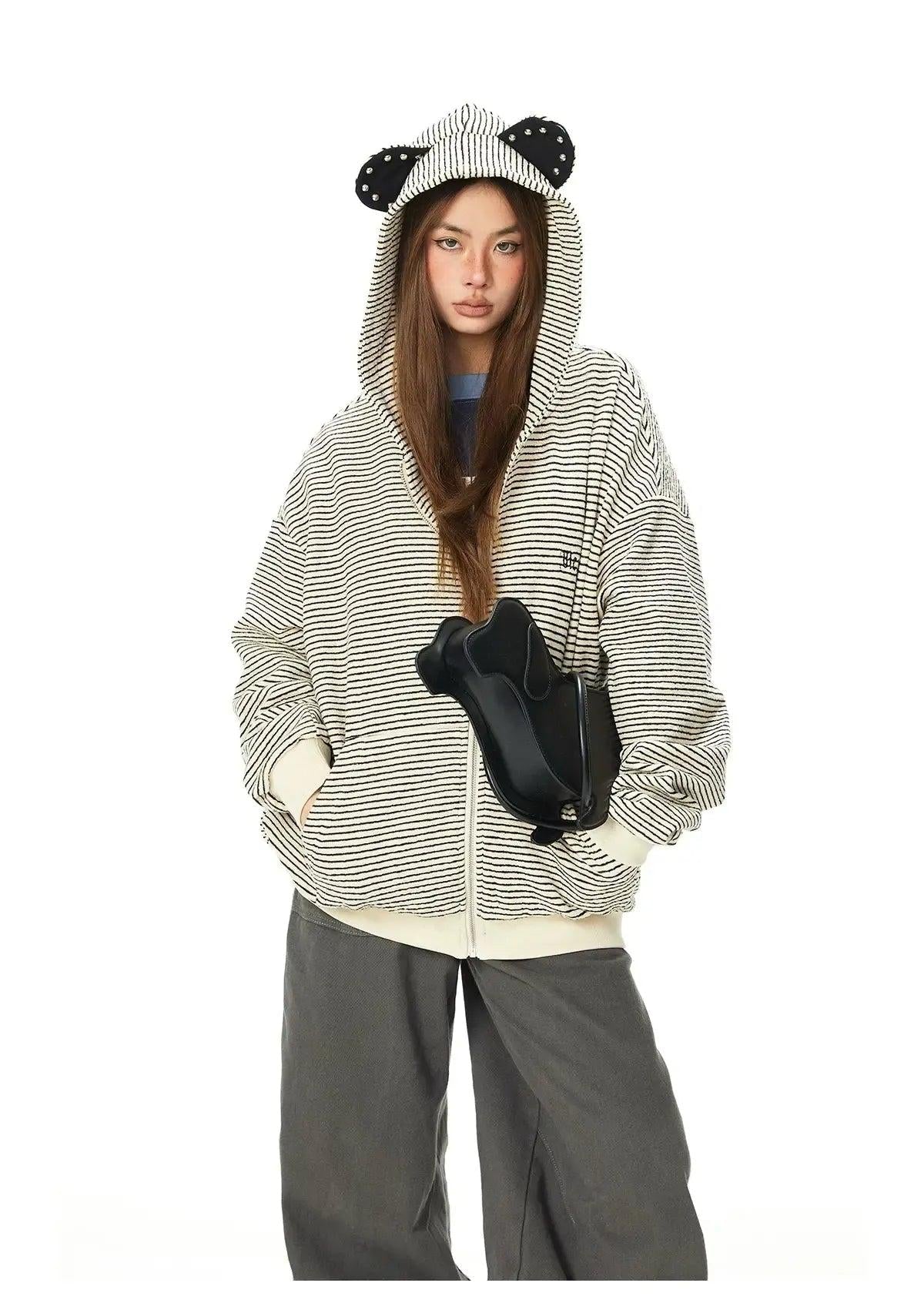 BB Cat Ears Thin Striped Zip-Up Hoodie