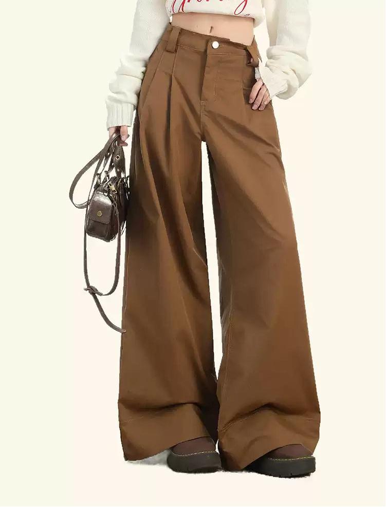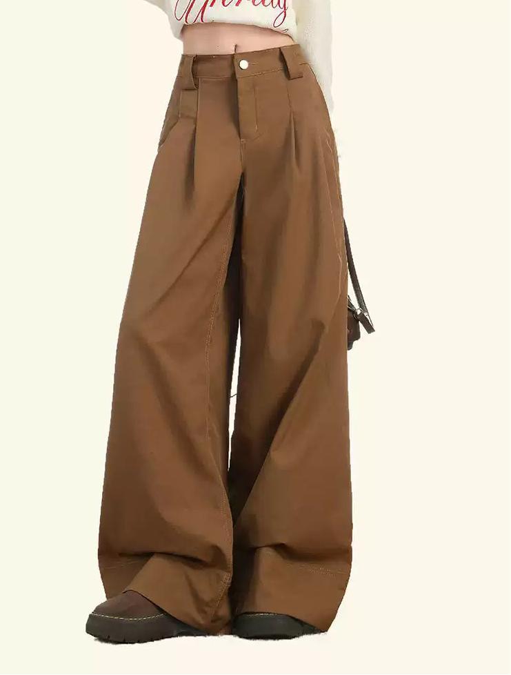 Lazy Solid Pleated Wide Pants