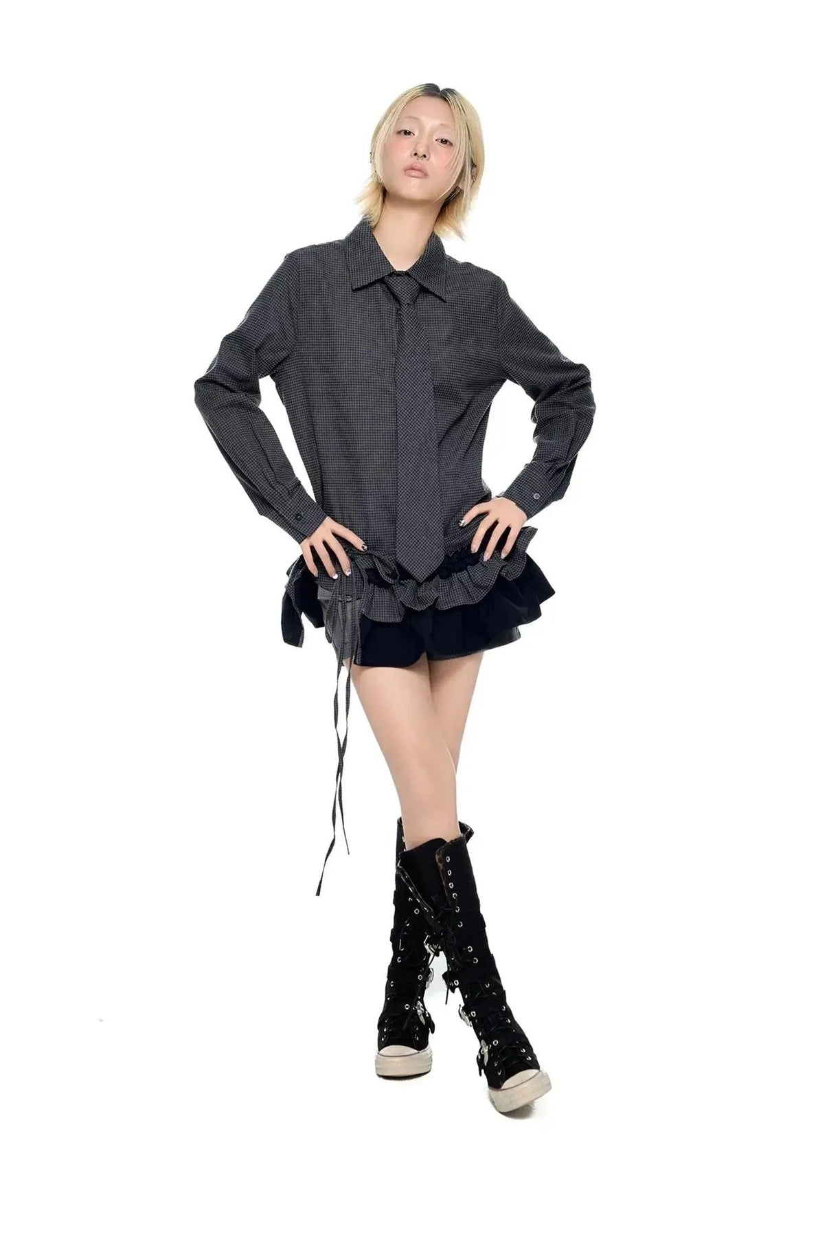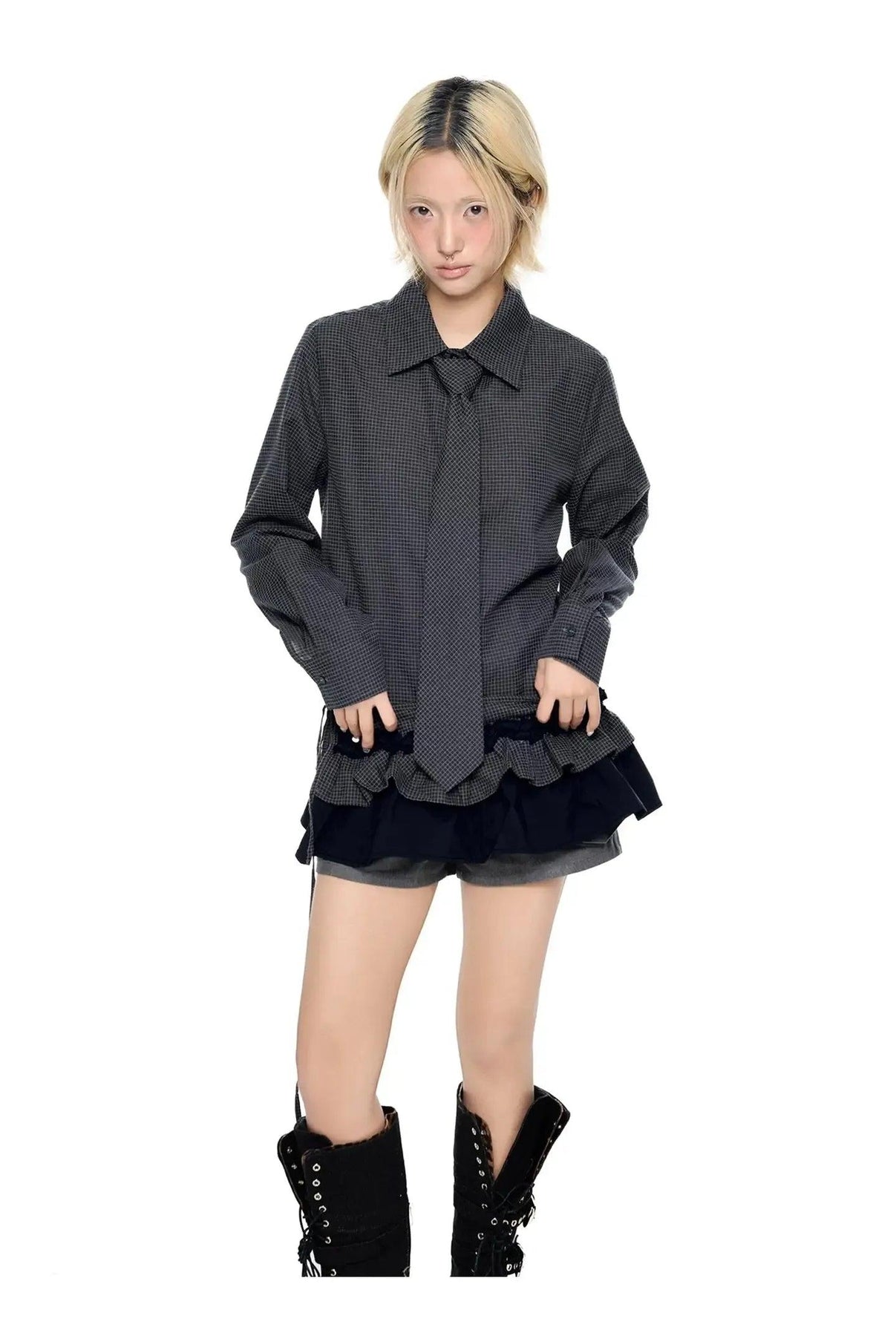 Tom Layered Ruffle Hem Check Shirt