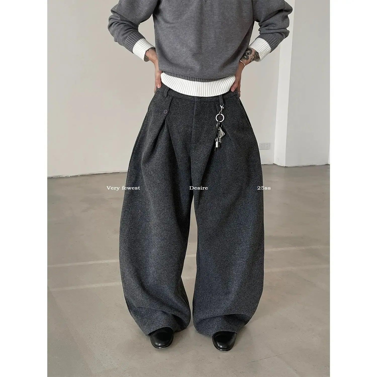 Gen Button Pleats Barrel Trousers