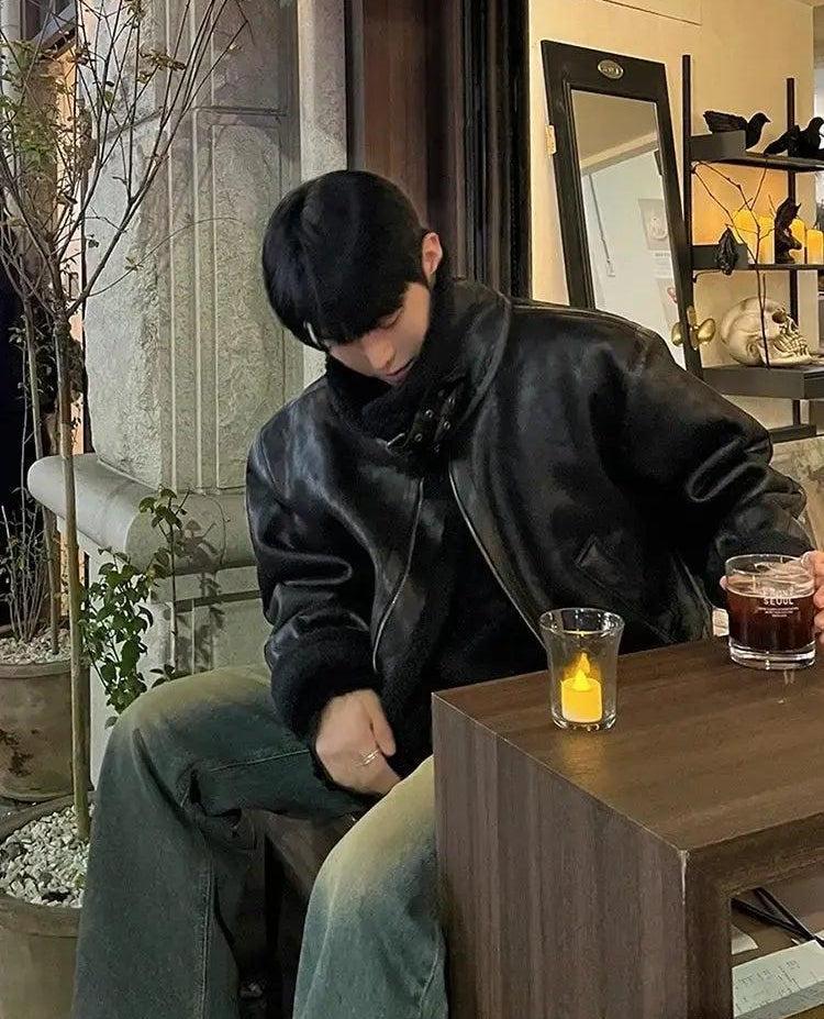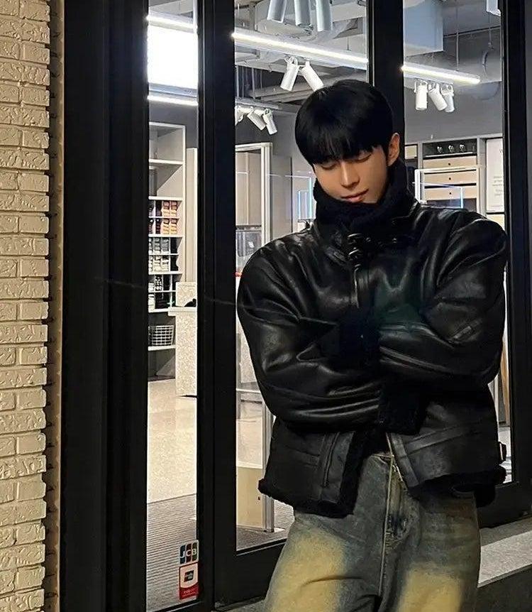 OH Fur-Trim Strapped PU Leather Jacket-korean-fashion-Jacket-OH Atelier-OH Garments
