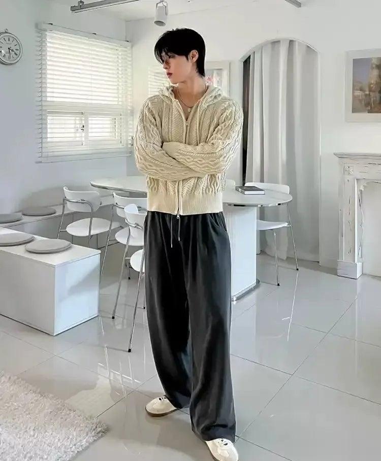 OH Drawstring Patterned Knit Zip-Up Hoodie-korean-fashion-Hoodie-OH Atelier-OH Garments