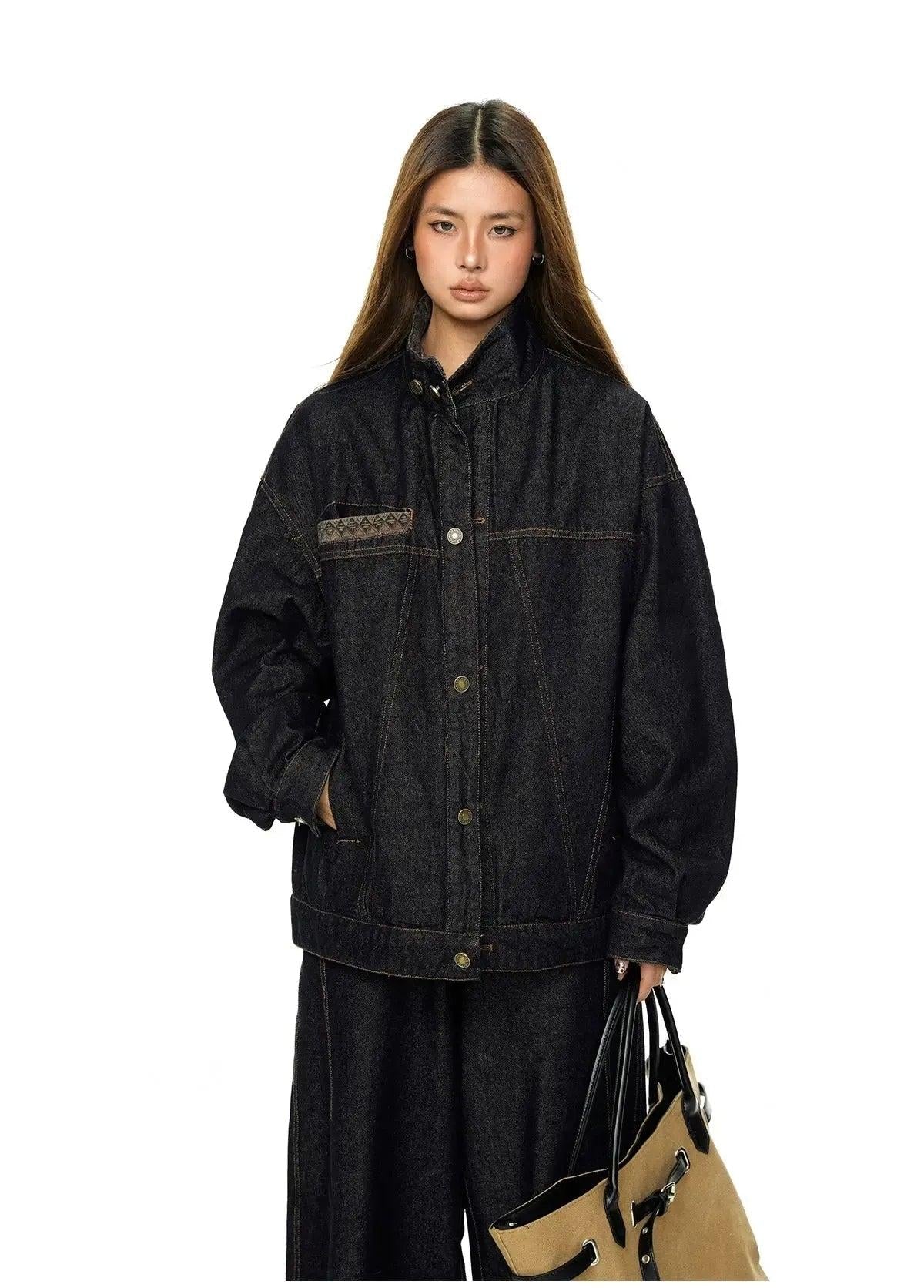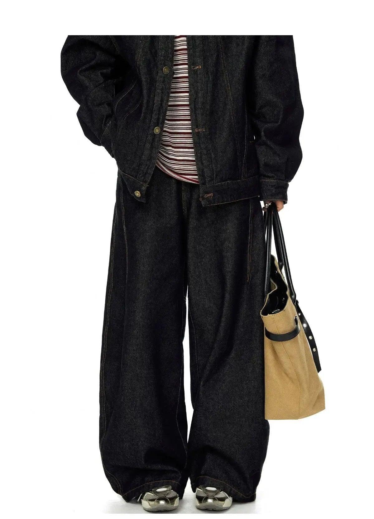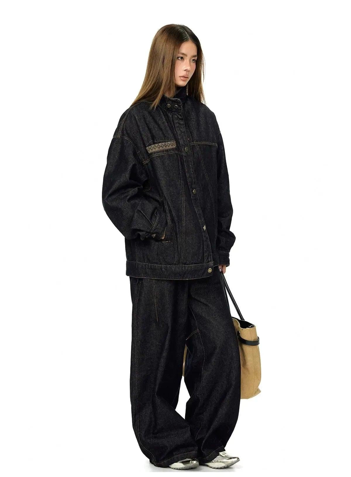 BB Stitched & Seamed Denim Jacket & Wide Leg Jeans Set