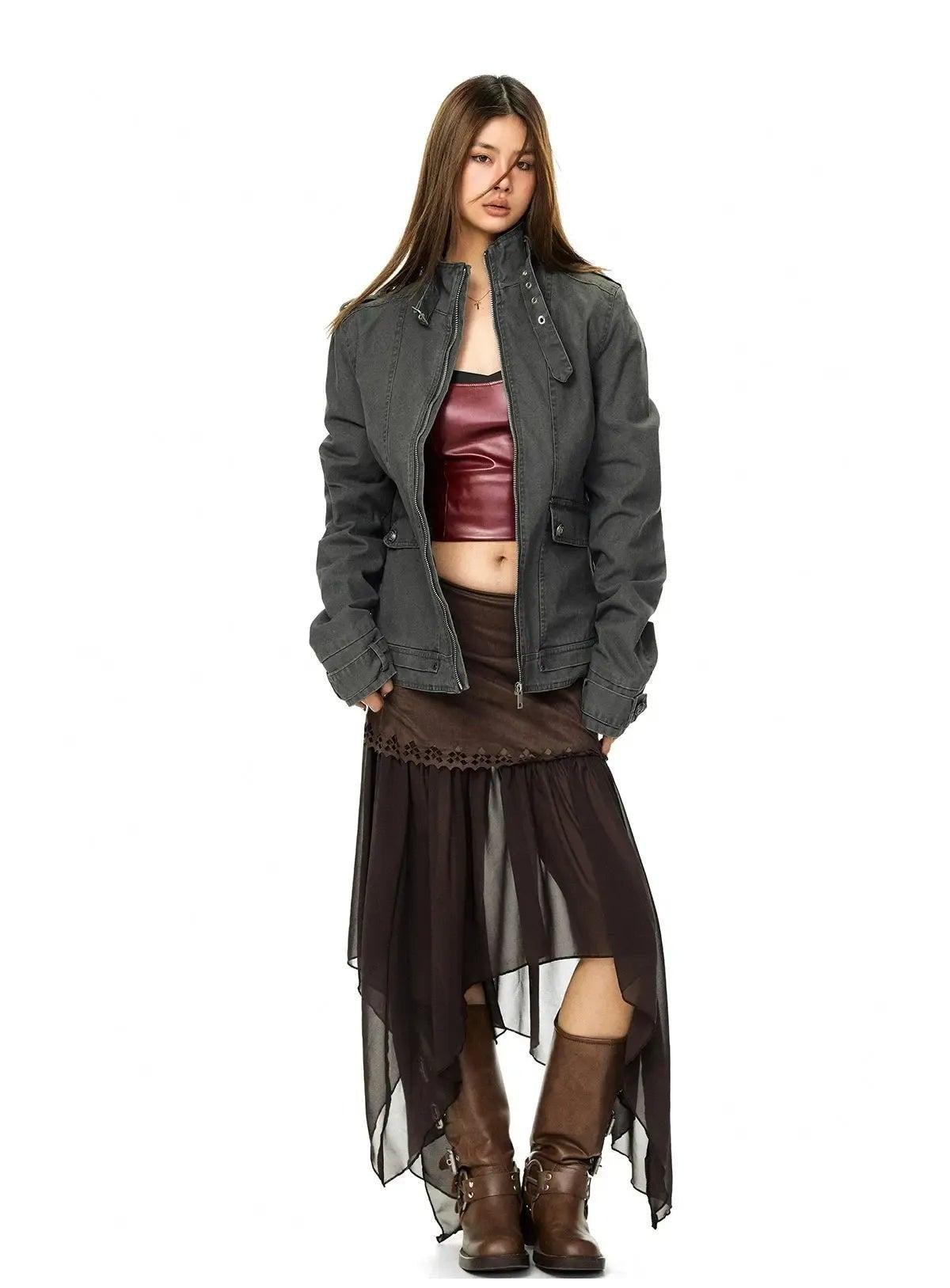 BB Strapped Stand Collar Denim Jacket