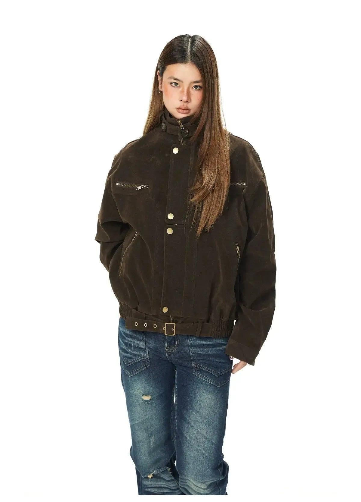 BB Strapped Stand Collar Multi-Zipped Jacket