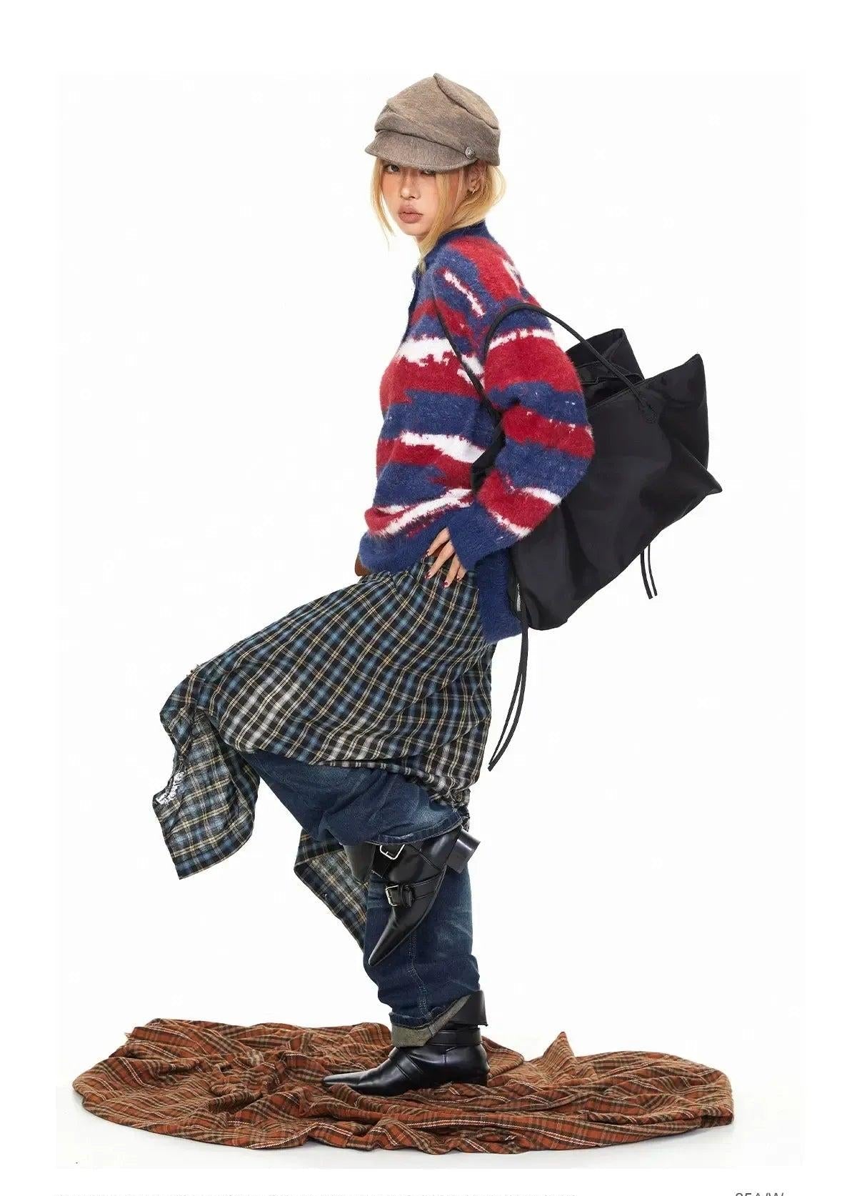 BB Fuzzy Contrast Collared Sweater